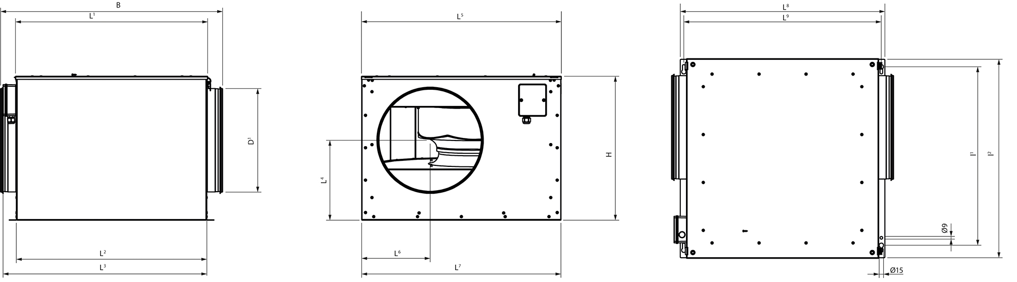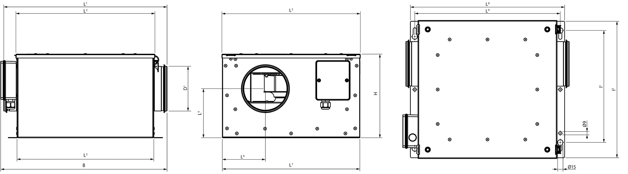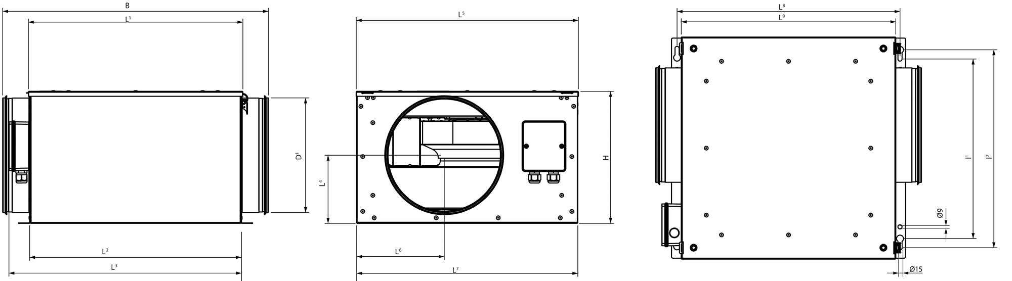 | H | B | D¹ | L¹ | L² | L³ | L | L | L | L | L | L | l¹ | l² | ||